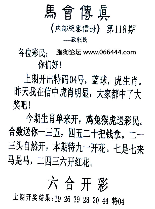 | 118--119期最火爆平特肖(狗)投资:118期包3万 |